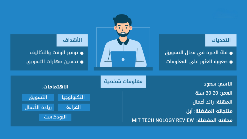 - السيكوغرافيا (Psychographics): تحليلي للغاية، يثق بالبيانات والأرقام أكثر من الوعود. يقدر الكفاءة ويكره إضاعة الوقت. يشعر بضغط مستمر لإثبات عائد الاستثمار (ROI) لجهود فريقه للإدارة العليا. يستمع إلى بودكاست “Marketing Over Coffee” في طريقه للعمل ويقرأ ملخصات تقارير Gartner.